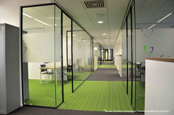 Dichte wanden vervangen door meer openheid en glaswanden zodat er meer verbinding ontstaat.